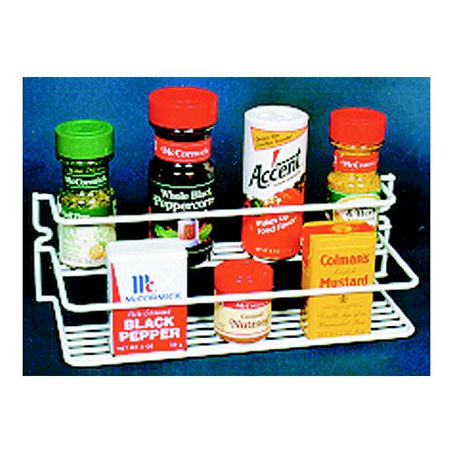 Finger tip convenience for your spices. White vinyl coated. 11-1/2" x 4-3/8" x 3-3/8" high. Screws included.