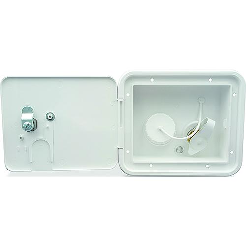 Water hatch has both a gravity water spout and cap for filling the fresh water tank and a city water fill for connecting to a water faucet. Factory tested for ZERO leakage. Comes with a Key Lock with a "Global Pro" interchangeable automotive type cylinder that can be changed to match your entry door lock or other compartments. Made in the USA!Direct OEM ReplacementBrass check valve w/ 1/2" Male Pipe ThreadAccepts 1-1/4" or 1-3/8" fill hose3/8" Tank Vent ConnectionIncludes installation kitCutout: 4-3/4" H x 5-7/8" WO.D.: 6-1/2" H x 7-5/8" W