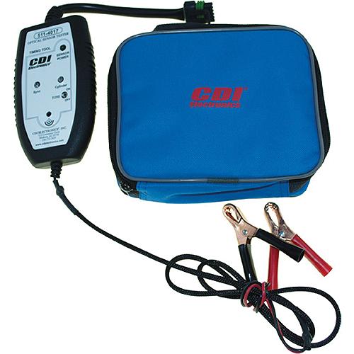 Used to test V4/V6 optical sensor on the engine or bench. Sounds an audible alert when setting the ignition timing, to allow an optional "eyes free" operation. Includes case, test leads and manual.See CDI catalog for complete application information.