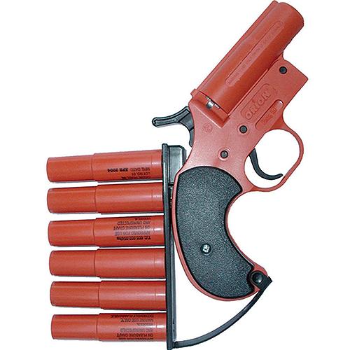 12 Gauge pistol launcher with bandolierSix 12 gauge red meteor twinFor boats up to 9 meters Sold in case quantities only