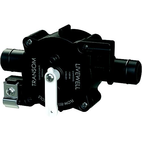 The V2 is our reversible check valve that allows a single pump to not only perform the basic livewell functions necessary to keep your catch alive, but does it in a passive or automatic manner. By mounting the pump to the valve body, the operator only has to decide whether he wants his livewell functioning or empty. When the first fish is caught, place the valve in the "AUTO" position and turn on the pump. When the boat is off plane the pump will recirculate and aerate the livewell water and simultaneously blend in a portion of fresh lake water. Used livewell water is expelled out the overflow as fresh water enters to prevent any ammonia build up. When the boat is put on plane, the valve's check flapper will prevent water loss out the drain, and allow the pump to continue its recirculation duties. Any water lost out the overflow while running on plane is automatically made up when the boat is brought off plane at the next fishing location. Ideally used in bassboats, flats boats, and other low profile boats for automatic drain control and livewell management. Accepts mounting of one standard aerator pump for both filling and recirculation. Provides EMPTY / AUTO modes