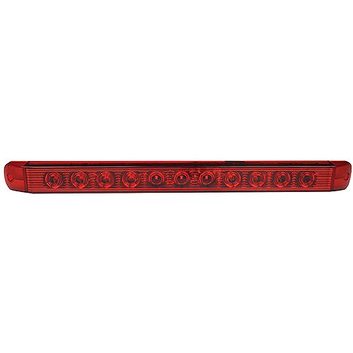 Red thin line stop/turn/tail light. Sonically sealed, waterproofLow profile-only 1-3/8" high x 1" thickSurface mount on 16-1/8" centersHard wired with separate ground wirePolycarbonate lens and housing12.8VDC -.350A Stop/Turn, .022A Tail