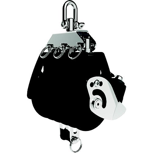 Synchro block are engineered for speed, efficiency and superior handling. High density, free-spin plain bearing and self-aligning head reduce friction and increase efficiency. Easy to use, patented shackle post lock. Stainless steel straps and glass-fibre reinforced cheeks. Sheave / bearing / pin & line size for optimum efficiency. Black.