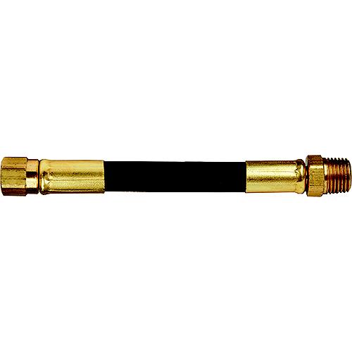 Flexible thermoplastic UL and CGA approved hose. These hoses are rated up to 350psig working pressure with a 400 pound pull test rating. Each hose comes with two ends and fully crimped brass ferrules.