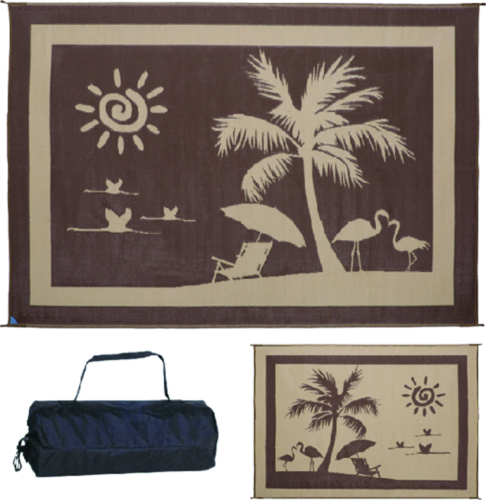 This reversible mat can be used indoors or outdoors; at home on the patio; next to your RV; in the park, garden or at picnics; while camping; or at the beach. It can also be used under pet cages and in exercise pens. Easily clean it with a broom or water sprayed from a hose. The woven construction dries quickly to prevent mold and mildew. The durable polypropylene material is coated with UV protection to resist sun damage and fading. Corner loops can be staked to hold it in place. The mat folds into a compact size for storage and comes with a nylon carry bag. Breathable material wont damage grass UV coated to protect against fading and other sun damageSoft and durable 100% virgin polypropylene materialEasy to clean and mold and mildew resistantsweep away dirt or spray clean with waterLightweight and compact, it folds for easy storage into included carrying bag