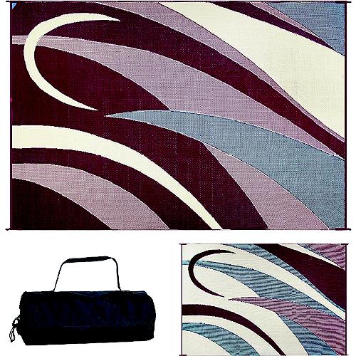 This reversible mat can be used indoors or outdoors-at home on the patio, next to your RV, in the park, garden, or at picnics, while camping, or at the beach. It can also be used under pet cages and in exercise pens. Easily clean it with a broom or water sprayed from a hose. The woven construction dries quickly to prevent mold and mildew. The durable polypropylene material is coated with UV protection to resist sun damage and fading. Corner loops can be staked to hold it in place. The mat folds into a compact size for storage and comes with a nylon carry bag. Breathable material wont damage grass. UV-coated to protect against fading and other sun damageSoft and durable 100% virgin polypropylene materialEasy to clean and resistant to mold and mildew - sweep away dirt or spray clean with waterLightweight and compact - it folds for easy storage into included carry bag