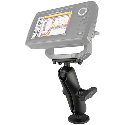 Consists of a round 2.5" diameter round base (Universal AMPs Hole Pattern), double socket arm and 1.5" x 3" rectangular base. The rectangular base contains four holes with a center to center pattern of 1" x 2.5". For most applications, mount will support up to ten pounds. Hardware for mounting to device not included with purchase.