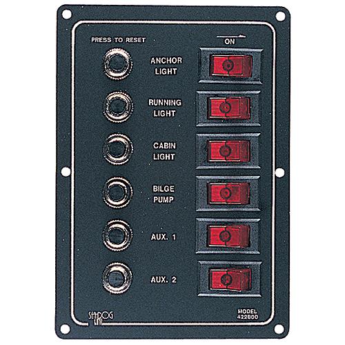 Seadog 422800 Aluminum 6 Circuit Breaker Panel - 6-1/2" X 4-1/2" - Stamped Anodized Aluminum - 422800-1 - 354-4228001F1