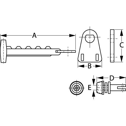 Molded nylon. Carded. Includes stainless steel pin.
