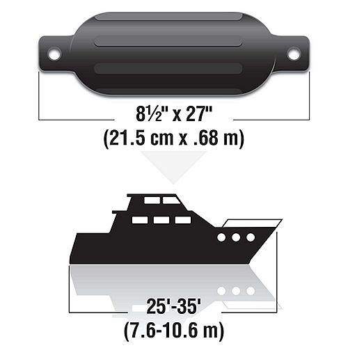 Seachoice 79071 Twin Eye Ribbed Fender, Black, 8.5 X 27" - De79276S - 50-79071F1