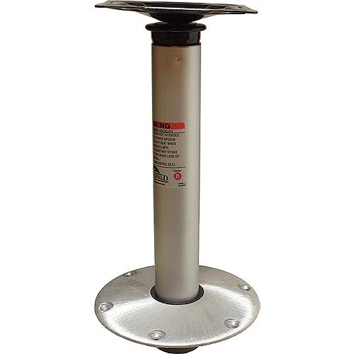 Hi-Lo 3 piece pedestal set with 9" diameter round base (1300751) and seat mount (1312700). This unique 2-position pedestal system allows the seat to be used in the full upright position while fishing or down in the lower position while boat is under way. Satin finish.