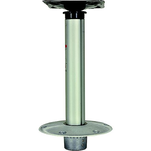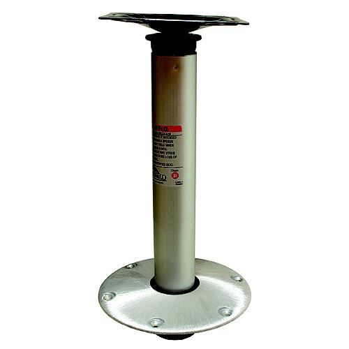 Hi-Lo 3 piece pedestal set with 9" diameter round base (1300751) and seat mount (1312700). This unique 2-position pedestal system allows the seat to be used in the full upright position while fishing or down in the lower position while boat is under way. Satin finish.