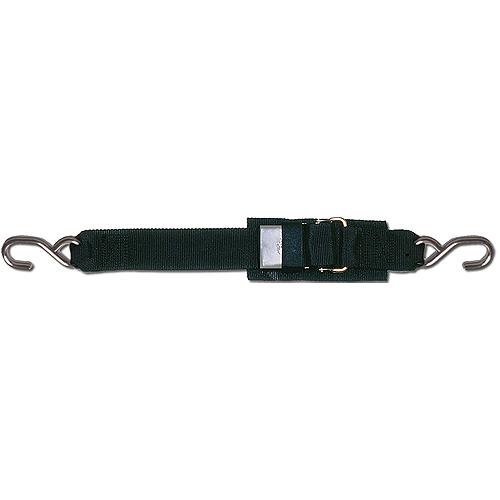 2" polyester webbing tie down features stainless steel quick release buckle and hooks with a 1" Velcro closure strap. Rated to 750 lbs. with a safe work load of 250 lbs. Clam shell packed.