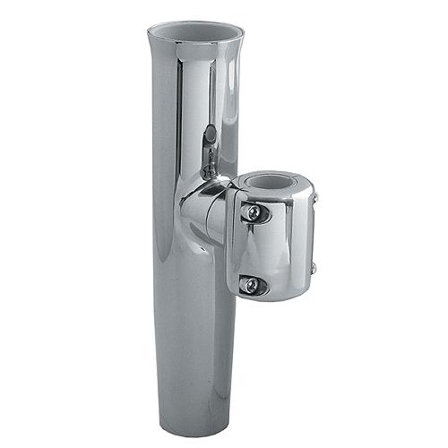 Adjustable stainless steel clamp on rod holder fits virtually any pipe or tube. Internal locking positions turn every 18° to adjust the angle of attack! Note: pipe sizes reference schedule 40 IPS pipe and are not intended to represent outside diameters. Limited 3-Year Warranty.