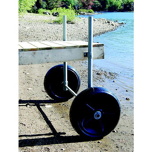 Plastic dock wheels are designed for roll-in docks and boat lifts. Made of UV stabilized heavy duty, rotomolded polyethylene. Large diameter rolls easily on all terrains. Designed for maximum strength with no maintenance requirements. Pre drilled with drain holes. Fits axle sizes 1.60" to 1.90" diameter.