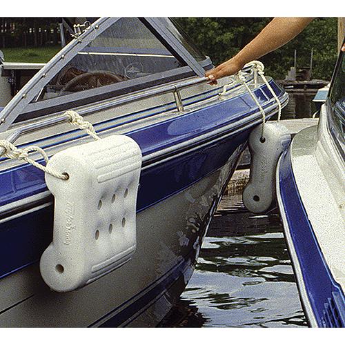 Designed to protect your boat and stay in place while rafting together. Extensively on-water tested. Features 6 molded-in lateral tubes for superior crush resistance, exclusive channel design to prevent pop-out and assure positive locking action along boats' rub rails, and 2 integral lengthwise tubes to allow more cushions to be tied together for a soft rafting board. Hangs vertically or horizontally. Ideal for tying to piling. Comfortable for sitting. Height allows view over windshield. Never to be used as a life saving device.