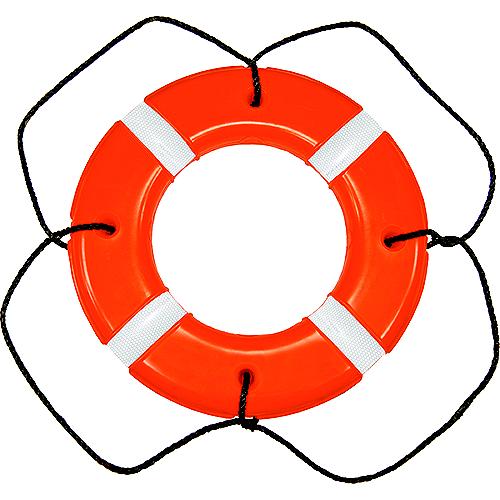 Contain unicellular polyurethane foam. Features floating polypropylene grab lines with UV Stabilizers, secured inside the foam core. Molded-in becket design means there are no straps to wear, mildew or deteriorate. Choice of vinyl or hard shell polyethylene skin. All rings meet USCG Commercial approval. SOLAS approved models equipped with reflective tape. Min. buoyancy 32 lbs.