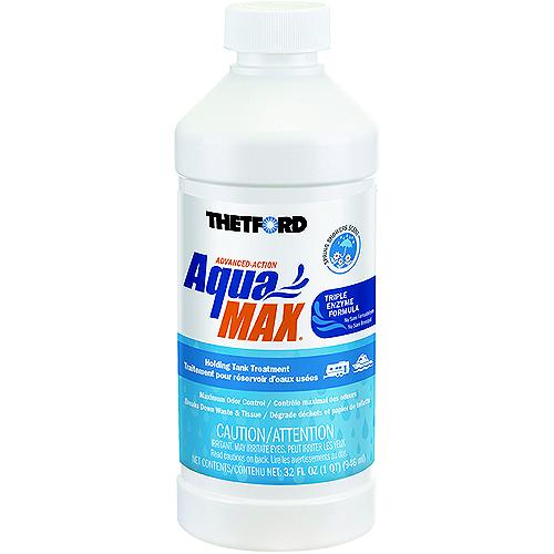 AquaMax®, the no Formaldehyde, no Bronopol holding tank treatment.AquaMax® Holding Tank Treatment's advanced enzyme powered formulas neutralize odors and accelerate waste digestion to prevent clumping, clogging and tank residue, all at the same time. Thetford's beneficial probiotic treatments are Bronopol Free and Formaldehyde Free to provide campground friendly and California compliant solutions. Formaldehyde FreeBronopol FreeNeutralizes odorBreaks down waste to prevent clumping, clogging and tank residueEnzymes optimized for MAX performanceBeneficial probiotics; good bacteriaSeptic system safeCampground and Marina FriendlyCompliant with all current regulationsConvenient family of options; liquids, dry granules and Toss-Ins® One dose treats a 40-gallon holding tank