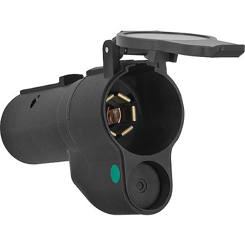 7-Way Flat Pin to 7-Flat Pin adapter w/LED lamp out by-pass for European vehicles. For vehicles with trailer lamp-out sensors, such as: Audi, Mercedes-Benz and Volkswagen vehicles with a factory tow package.