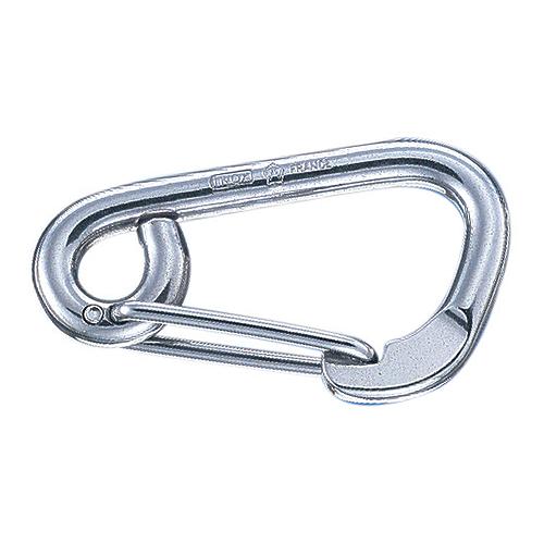 Grade 316L stainless steel with eye to attach strap. Simple, strong and safe, all these hooks employ the famous Wichard torsion spring. Designed and made in France.