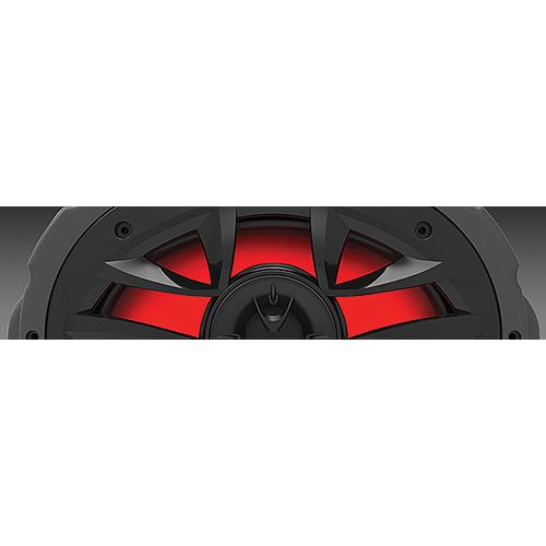 RGB feature allows for control of LED light functions. Choose from having a constant one color illumination of choice or to rotate between multiple colors in a strobe or fade mode. 20 Mulit-color illumination options19 Dynamic Illumination PatternsSpeed and brightness controlInterconnect lighting controlPower handling: Peak 600WFrequency response: 6540Hz-20KhzSensitivity @ 1 Watt/1 Meter: 89dBImpedance: 4 OhmPolypropylene Cone and High Performance Voice Coil4" Midbass DriverTweeter: 1" PEI DomeMounting Bracket: 2"©3" Diameter