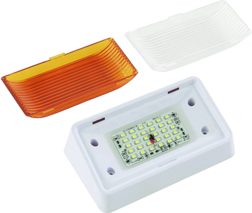 Clear & Amber Lenses (clear 150 LUM, amber 96 LUM), 11-18VDC. Applications include 12-volt DC camper, RV and marine vehicles. 30 High Power 3528 LEDs. Beam Pattern 120 degrees. Luminous Flux 150 Lumens with clear lens; 96 Lumens with amber lens. 1.92 Watts. Color temp 6000-6500K Cool White. 5.12L x 2.05"W