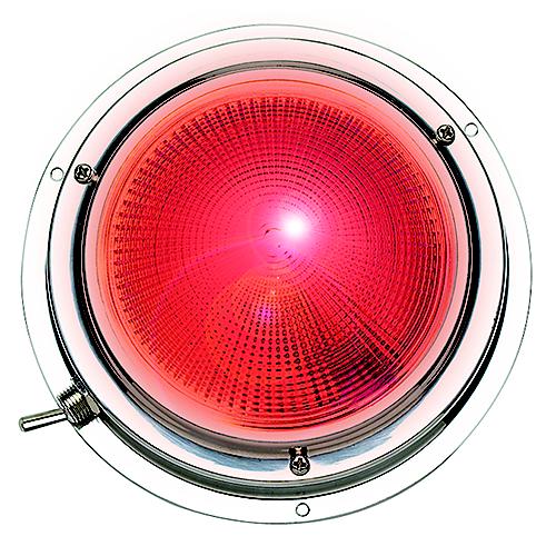 Highly polished stainless steel cabin light. Two illumination features: Bright White and Red. The red light is ideal for night time use. Heavy duty clear pattern glass lens. Built in stainless steel toggle switch. 15W/12V. 12V-6 CP bulb supplied. Fasten with #6 screws. Red replacement bulb #09881