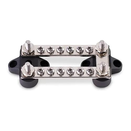 Glass fiber reinforced nylon base ensures great mechanical strength and durability Tin-plated copper busStainless steel studs and screws provide superior anti-corrosion protectionInsulated base ensures no electrical leakage to metal hullsUses Stainless Steel M4 screwsRemovable connecting link: Removing the link creates separate negative and positive buses conveniently on a single bus block