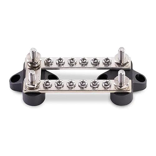 Glass fiber reinforced nylon base ensures great mechanical strength and durability Tin-plated copper busStainless steel studs and screws provide superior anti-corrosion protectionInsulated base ensures no electrical leakage to metal hullsUses Stainless Steel M4 screwsRemovable connecting link: Removing the link creates separate negative and positive buses conveniently on a single bus block