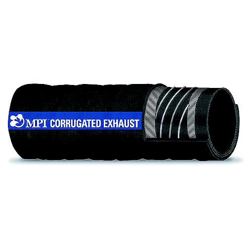 Certified for wet exhaust service. Offers the same features as our premium softwall (Series 200) and hardwall (Series 250) exhaust hose. In addition, the corrugated construction with double wire helix embedded between two rayon spiral cords provides excellent strength and flexibility-4-ply construction. Color coded with a blue stripe. Meets or exceeds SAE J2006 R2 standard, and has double the ozone resistance required by the SAE J2006 standard. Is formulated for maximum resistance to heat, weather, UV and ozone resistance. Temperature range -20°F 220°F (-29°C to 104°C).