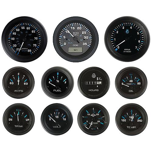 | 11-69712P | Sierra 69712P Eclipse Series Black Outboard 4 Set with Tachometer / Hourmeter, Speedometer, Voltmeter & Fuel Gauges |