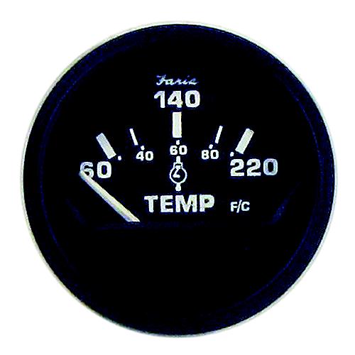 Faria 12819 Euro Black 2" Cylinder Head Temperature Gauge With Sender (60-220F) - F12819 - 678-12819F1