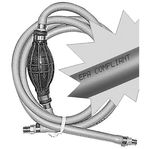 Low permeation hose with threaded fittings. Includes an "EPA-MERC-PB15-2" primer bulb. Bulbs will perform at 5° F after 6 weeks of exposure to fuel. Fits varying applications using the older style twist type disconnects at the engine end and either a bayonet or thread-in fitting on the tank end.