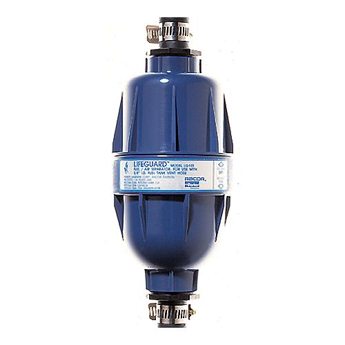 A typical refueling will send up to a half gallon or more of fuel spilling overboard. USCG and other regulations prohibit the discharge of oils including civil and criminal penalties.Installed in the fuel tank vent line, the Racor Fuel/Air Separator efficiently separates air from fuel forced into the line. Air is vented, and all fuel is returned to the tank. The Fuel/Air Separator captures fuel normally discharged due to agitation and thermal expansion up to 2.4 PSI. It also eliminates damage to expensive striping and labels and protects finishes from fuel stains. The unit is maintenance free -- there's nothing to rust or corrode.Fits neatly into your vent line, actually replacing a section of the line. One Fuel/Air Separator unit is required for each vent line. Hose barb: 5/8".LG100: (17 CFPM max air flow, Size: 9-3/4" H x 4" dia.)Stage One - Venting tank fuel is deflected by the flow diverter and fuel is directed down to the drain ports. Air is allowed to bypass and continues out.Stage Two - Fuel defoams through a fine wire mesh screen which filters out largecontaminants. Under the screen, the fuel collects temporarily until it can flow back down to the fuel tank. Stage Three - Vapor collects on the interior surfaces and coalesces. The fuel returns downward by gravity and air continues out. The safety relief valve includes a floating check ball which will not permit a large in-rush of fuel to bypass. In the event of internal pressure reaching 2.4 PSI (0.17 bar), the spring will compress and open the safety seat.