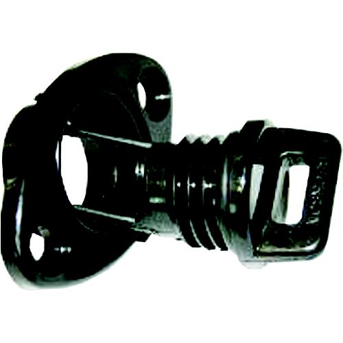 A screw-type with self-cleaning thread design. Ideal installation for transom of small boats, fish wells, coolers, ice chest, water tanks, etc. Part should be mounted in 1" ID hole with two stainless steel fasteners with gap in thread at lowest point. 1". Black. Includes gasket.