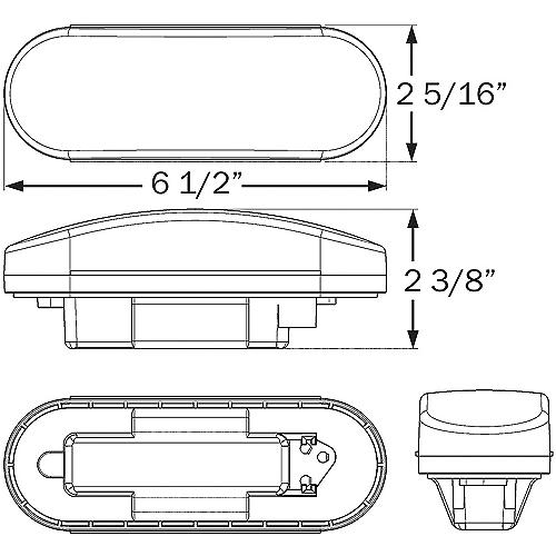 Meets the requirements of SAE/DOT/FMVSS/CMVSS standards when properly installed Meets the requirements of SAE/DOT/FMVSS/CMVSS standards when properly installedSonically sealed, waterproof3-Function: Stop, Tail, TurnPolycarbonate lens and housingInstallation hardware includedKit Includes: Light, Grommet, Plug (Pigtail)Size: 6.5" x 2.313" x 2.375"