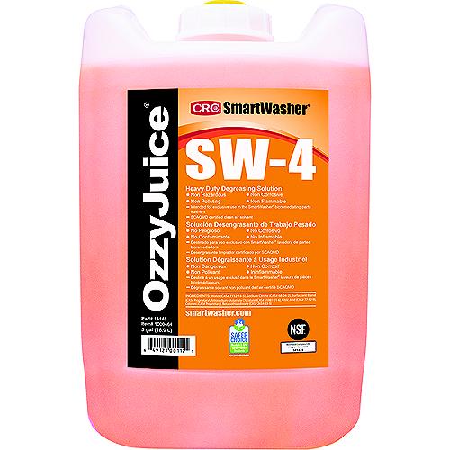 OzzyJuice® Degreasing Solutions work exclusively in the SmartWasher® Bioremediating Parts Washers. Designed with the user in mind, the OzzyJuice solutions perform as well or better than any premium solvent without all the health risks or environmental hazards associated with solvent use. OzzyJuice® is a powerful, aqueous based degreasing solution that is pH-neutral, non-hazardous, non-flammable, non-caustic and non-toxic. Armed with superior cleaning capability, the OzzyJuice solutions will match or surpass the performance of a premium solvent without all the associated risks. All OzzyJuice solutions are certified by both NSF and AQMD.easers. Each of our solutions is packaged in a 5 gallon box completely blended, ready to use - simply add a 5 gallon box directly into the SmartWasher - no fuss, no muss. Choose the OzzyJuice Degreasing Solution that is right for you. SW4 Excellent for: Crude Oil, Hydraulic Transmission Fluid, Motor Oil, Solder & Flux, Bearing Grease, Automotive Grease, Resin Products, Fifth Wheel Grease, Creosote, Impacted Grease, Animal Fat, Burned-On Carbon