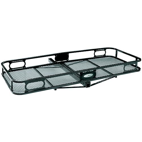 Mesh floor for easy cleanup 6" side rails to retain cargoFits 2" Sqare Receiver Mt.Attachment holes for load securing devicesMounting holes for optional lighting kit (not included)Black powder coat finish resists corrosion