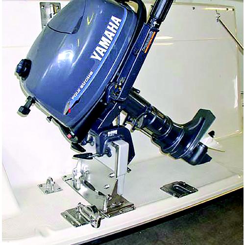 Allows you to remove your motor from your dinghy and place it on the swim platform in a horizontal position before getting out of your dinghy. The bracket is removable from the swim step leaving a low profile receiver plate on the swim platform similar to the Weaver Quick Kit bracket. Dimensions 13" W x 5" D x 10" H.