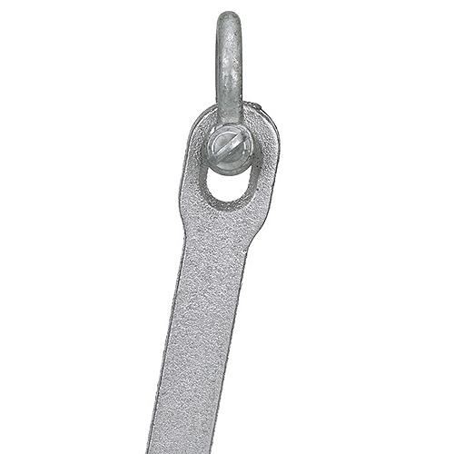 Aluminum painted iron . Double-dipped painted aluminum for rust resistance. Large cast rope eye. For use in gravel, stone and shale bottoms.