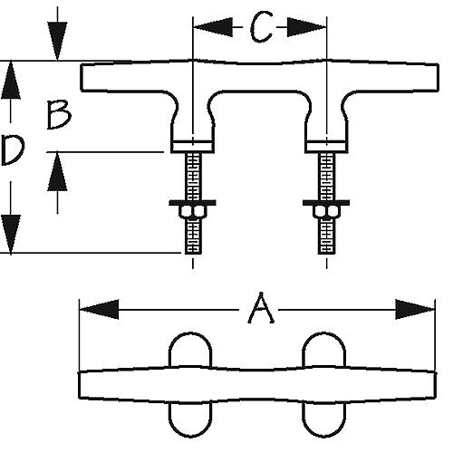 Die cast chrome plated zinc stud-mount cleats feature attractive, traditional styling. Installation is easy with two standard bit size holes drilled for the studs, no cut-outs or hole saws required. The stud mounted fasteners are hidden leaving no exposed fasteners to collect water or debris. Galvanized studs, washers and nuts included for clean looking installation. Interchangeable with legacy Perko® style 1210 cleats. Recommended for freshwater applications.