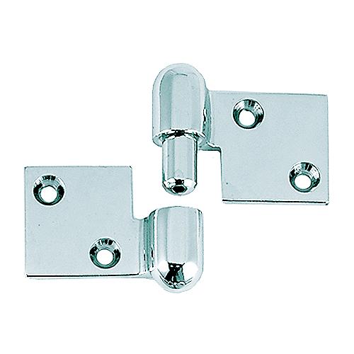 Chrome plated bronze. Use two left or two right hand hinges for quick removal of hatches, motor covers, or together as a heavy-duty hinge.