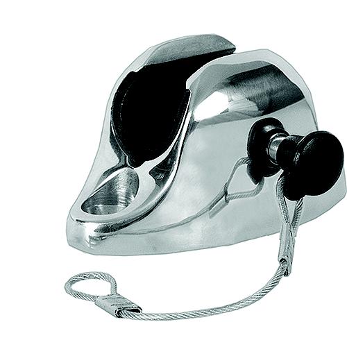 High quality, marine grade Type-316L stainless steel with polished finish for strength and long lasting durability. Delrin insert provides smooth, rattle-free canvas top operation. Can also fit windshield headers. With quick release pull and D-ring pin. Fastener: #8 Flat head screw. 5-Year limited warranty.