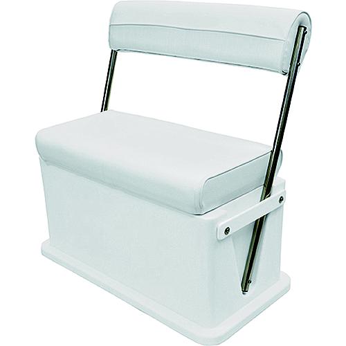Premium grade UV treated vinyl utilizes a fiber backing for long life and increased tear resistance. Bright white color is ideal for boats and stays cool to the touch. Thick, foam-in insulation, double wall15.5 gallon livewellRounded interior cornersRecessed pockets for swing arm travelHigh density foam cushionsHeavy duty 28 oz. marine-grade vinylUV treated to resist mildew and fadingStainless steel hardware & armsDrain complete with fitting