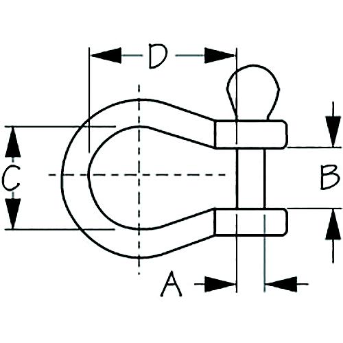 354-147054Seadog 147054 3/16" Stainless Steel Bow Shackle, Bulk, A:1/8", B: 5/16", C:1/2", D:13/16"