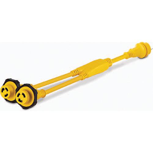 Y' adapters allows the user to split a 30A 125V dockside receptacle between (2) 30A 125V boat inlets. Sierra 'Y' adapters are easy to use and perfect for the harsh marine environments. Yellow PVC cord jacket with maximum UV inhibitorsJacket Rating: STW 600VAC @ 60°CHigh quality, corrosion resistant nickel-plated brass contactsNylon plug body for high resistance to carbon trackingETL Listed