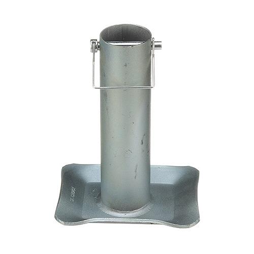 Jack foot fits round tube A-frame jacks with a 2-1/4" outer tube. Attaches to 2" inner tube with the included pin and clip. Corrosion-resistant, zinc-plated finish.