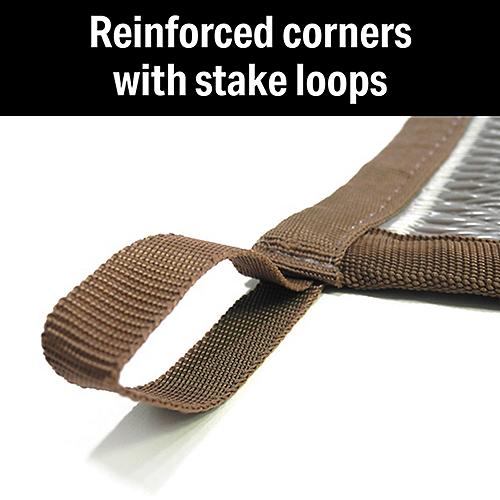 FulTyme RV Outdoor Patio Mat in Grey/Light Tan and is 6' x 9'. Tight weaving and reinforced stitching for long lasting durability. UV coated polypropylene material for weather and fade resistance. Lightweight for easy handling. Reversible-like getting two mats in one. Heavy duty piping on two sides with reinforced corner and stake loops (stakes sold separately). Tight weaving and reinforced stitching for long lasting durabilityUV coated polypropylene material for weather and fade resistanceLightweight for easy handlingReversible-like getting two mats in oneHeavy duty piping on two sides with reinforced corner and stake loops (stakes sold separately)Mats fold easily for storage