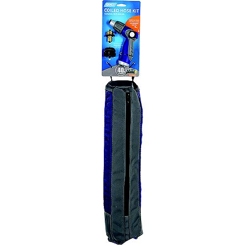 Complete 40-foot coiled hose assembly that is ideal for marine use, as well as general cleaning, car washing and daily gardeningKit includes: 40' coiled hose, nozzle with thumb lever, a spray pattern adjustment dial, swiveling/quick connect fitting and vented storage bag with a carry handle and D-ringCoiled hose features strain relief to help prevent kinking and self-coils for easy storageDurable, rust resistant brass hose fittings.Quick connect fitting allows the hose to easily attach/detach from the spray tip nozzle and swivels 360-degreesNozzle has thumb lever flow control and an easily adjustable spray