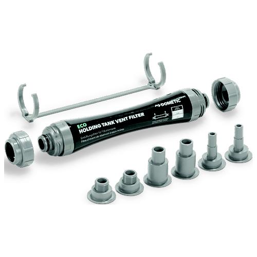 The vent filter absorbs holding tank vent odors and keeps the surrounding air clean and pleasant. The vent filter eliminates the need for any holding tank chemicals. Package includes Vent filter, Fittings (16mm to 38mm) and bracket.